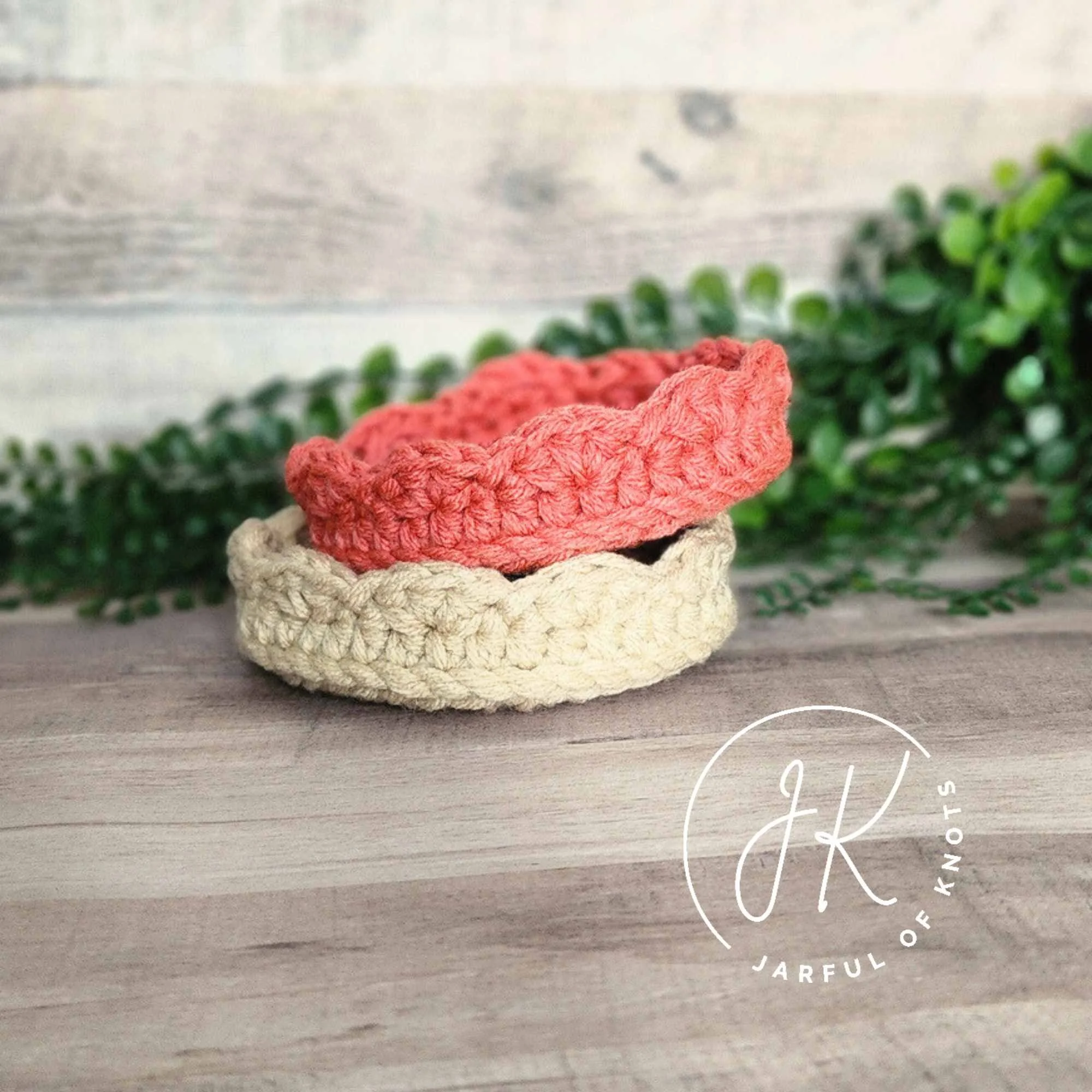 The finished dimensions of this tray comes out to around 5.25” to 5.75” diameter depending on the actual thickness of yarn used; so it is perfect for your trinkets, keys, or Knick Knacks. I provide a gauge below, but it’s not important unless you are highly invested in getting an exact diameter. I hope you’ll give it a try and please tag me @jarfulofknots on socials or comment below! The free version of this pattern is provided below along with a quick 2-minute tutorial. Please note that the video tutorial is a quick overview only.